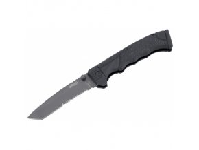 Nôž má 95 mm čepeľ s ostrým z polovice hladkým a z polovice vrúbkovaným.